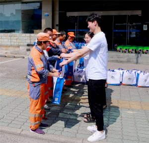 為表達公司對環(huán)衛(wèi)工人、交警、城管的關愛,踐行萌恒回報社會,助行公益的理念,7月28日上午,公司針對長豐片區(qū)的66位環(huán)衛(wèi)工人、交警、城管開展了“夏日送清涼”的主題慰問活動。這也是萌恒自2011年開始每年進行“夏日送清涼”慰問活動的第10年。 他們身著黃色制服,負責街道衛(wèi)生保潔工作,被我們親切地稱為“城市黃玫瑰”,比起往年,2020的新冠疫情下他們承擔了更多的清潔和消毒工作。 他們是“城市指揮家”,負責城市的道路暢通,自抗擊新冠疫情防控戰(zhàn)打響以來,他們始終堅守在工作崗位上,用自己的實際行動踐行責任、守護平安。 他們是“城市文明守護者”,保證城市的美麗規(guī)范,地攤經(jīng)濟倡導下,最近他們又多了一份維持地攤擺設區(qū)域秩序和美觀的新任務。 剛出梅,高溫就席卷了寧波,在這炎炎夏日,萌恒義工們將公司精心準備的水果、銀耳、五谷禮盒、毛巾禮盒、沐浴露等夏季清涼禮品送到這些堅守在第一線的英雄們手里,將溫暖和關愛帶給他們,向努力在最基層的城市工作者致敬! 行雖微,善乃大,公益路上,萌恒會一直前行!