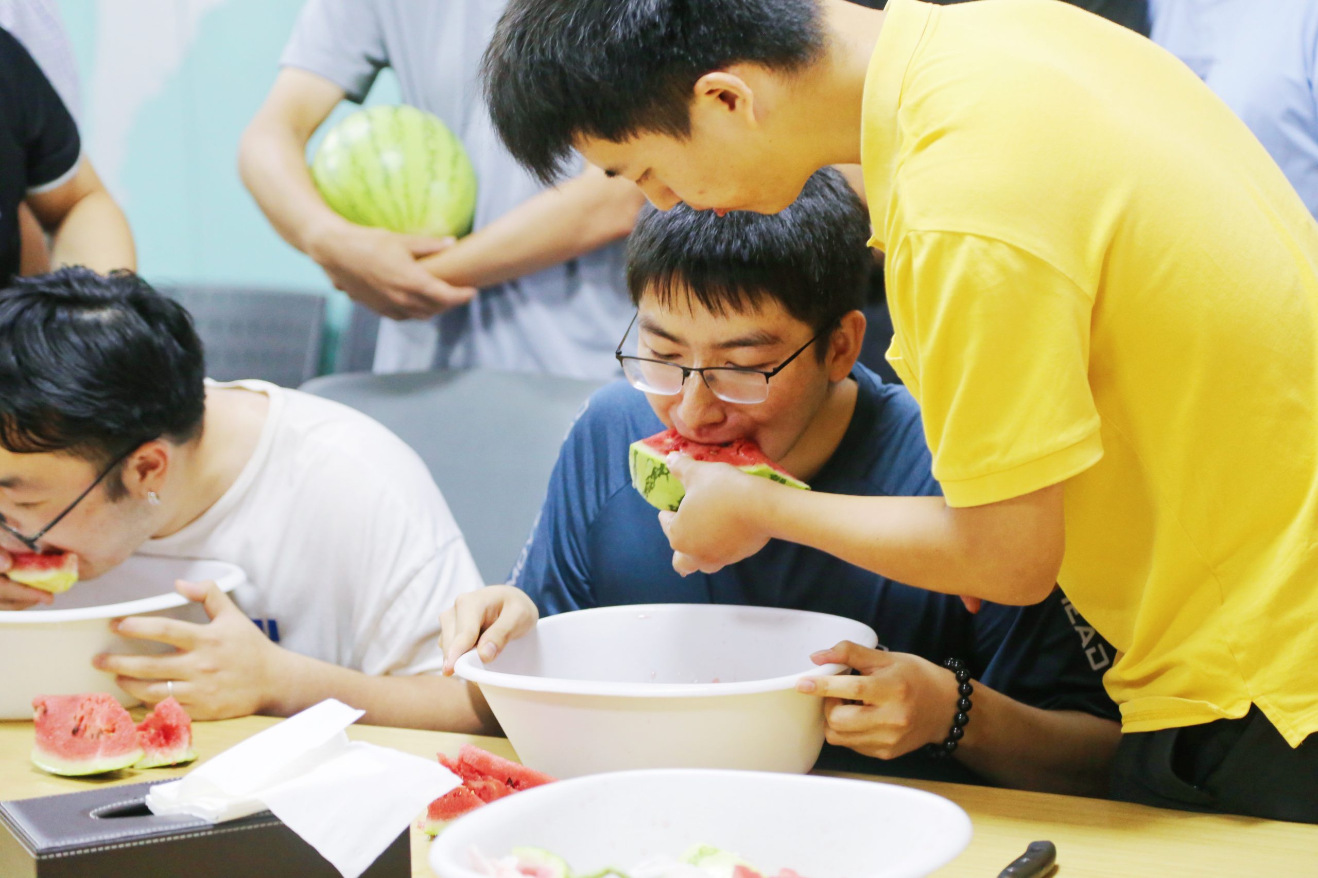? ? 十支參賽隊伍躍躍欲試,吃瓜人的手不能觸碰西瓜,只能依靠隊友的投喂,團隊作戰(zhàn),時間是制勝法寶,配合更是秘密武器,一場“吃瓜大賽”一觸即發(fā)!摩拳擦掌的選手,沁甜冰爽的西瓜,隨著裁判的一聲令響,參賽選手們火力全開,當中有“推土機”式的狂野派,也有“生吞”式的豪放派,大家紛紛展現(xiàn)出真正的“吃瓜實力”,這一場吃瓜較量,比得就是速度!最終,瓜瓜瓜瓜瓜瓜隊以1分21秒10的成績摘得“吃瓜冠軍”的頭銜。