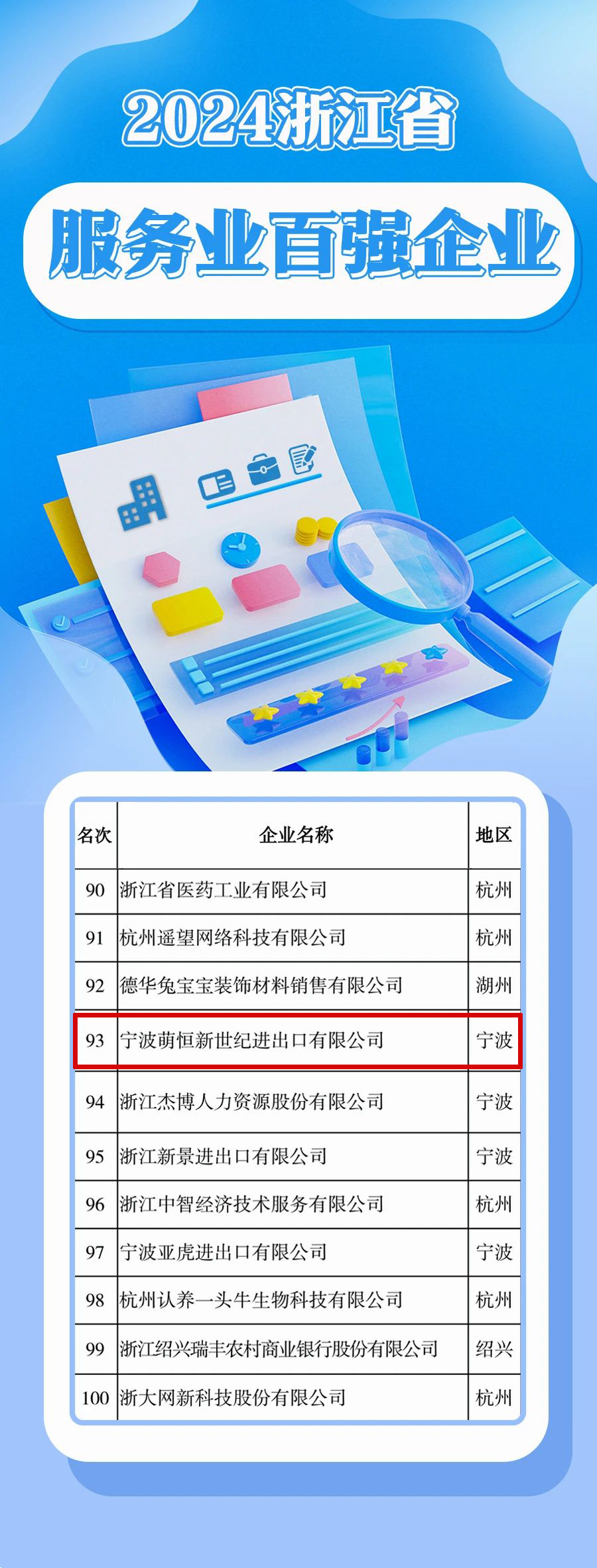 萌恒新世紀榮登2024浙江省服務業百強榜