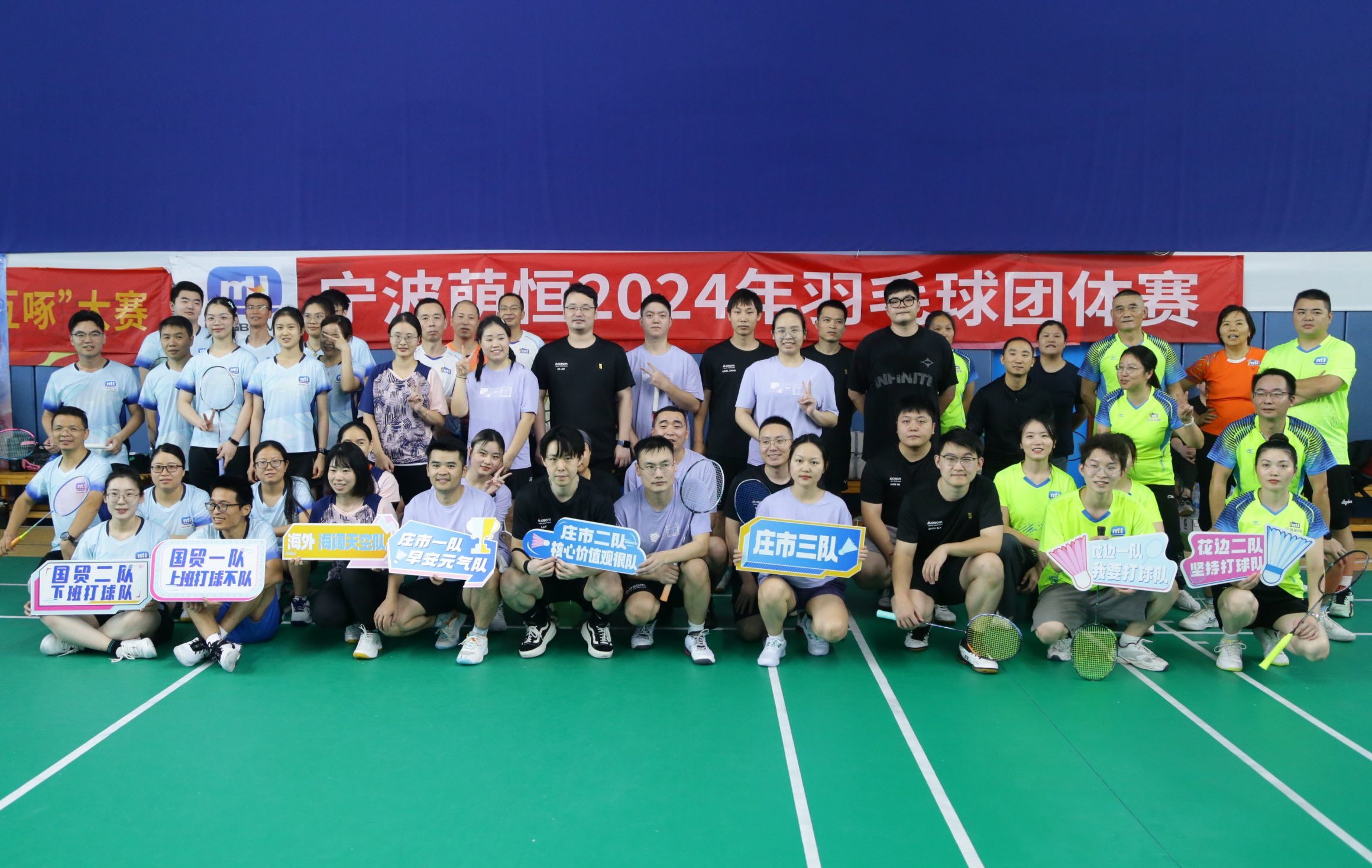 下午一點,萌恒羽毛球團體賽在寧波長勝球館拉開帷幕,比賽以“文明、友誼、拼搏、向上”為宗旨,共有來自莊市片區(qū)、洪塘片區(qū)及長豐片區(qū)的8支隊伍、54名運動員參加。公司領(lǐng)導(dǎo)陳總、徐總也換上運動裝備,加入戰(zhàn)隊,與伙伴們一起并肩作戰(zhàn)。