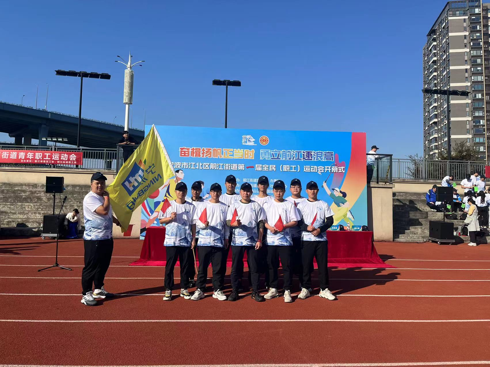 近日,“奮楫揚帆正當時·勇立前江逐浪高”寧波市江北區前江街道第一屆全民(職工)運動會開幕式在寧波福山正達外國語學校舉行。來自轄區11家企業、街道機關、社區、村的170名參賽選手來到現場,共計17支代表隊參賽,萌恒一隊10名隊員組成代表隊參賽。 第一屆全民(職工)運動會共設趣味、乒乓球、籃球、羽毛球四項團體賽。...